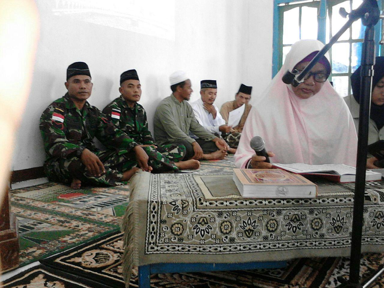 Sebelum ceramah Agama yang dibawakan oleh DR. H. Miftahul Buda S. HI. MH, Wadan Satgas Yonif Linud 431/SSP Myr Inf Muh. Amin memberikan bantuan berupa Al Qur’an sebanyak 100 kepada pengurus Masjid Miftahul Huda.