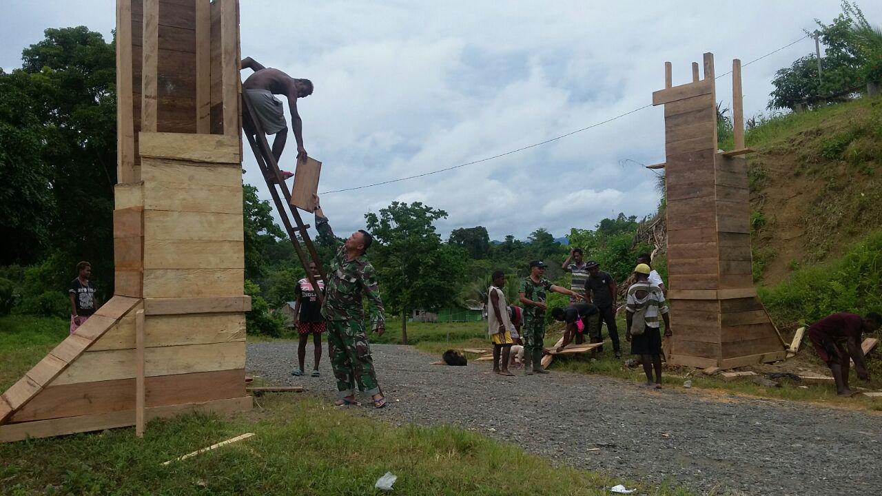 Jayapura. Bertempat di Kampung Sisik, Distrik Kaureh, Kabupaten Jayapura, Danramil 1701-13/Lereh beserta Babinsanya dan 20 orang masyarakat Kampung Sisik melaksanakan Karya Bhakti dalam rangka pembuatan Gapura pintu masuk Kampung Sisik. Kamis (17/3)