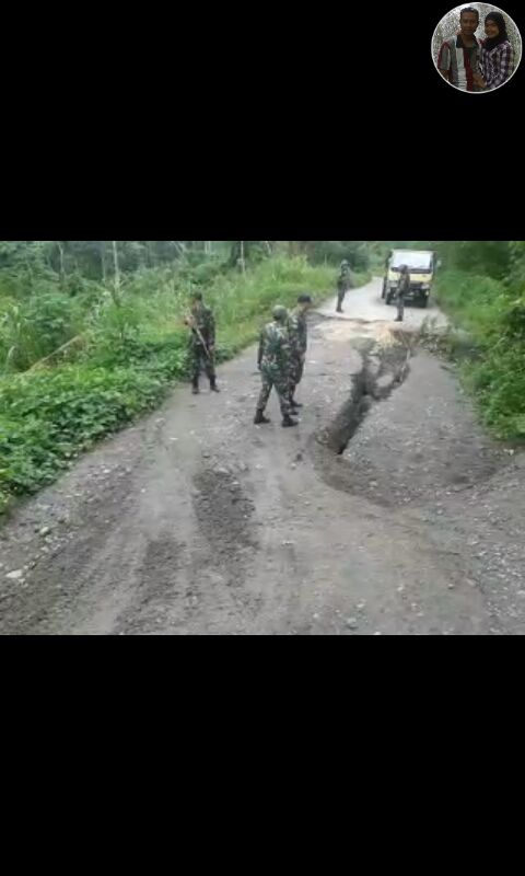 Keerom, cuaca hujan selama 1 minggu ini di Kab. Keerom membuat beberapa daerah terendam banjir. Hal ini juga mengakibatkan beberpa jalan yang menghubungkan Distrik Waris ke Kp. Yabanda terputus karena tanah longsor dibeberapa titik jalan sekitar Kp. Kalibom terbelah sepanjang 10 meter & amblas hampir setengah meter sehingga tidak bisa dilewati mobil, hal ini tentunya membuat masyarakat yang mau beribadah paskah menjadi terhambat. Oleh karena Kp. Kalibom masuk dalam wilayah penugasannya maka lettu inf Purbo selaku Danpos Kalibom yg merupakan pos jajaran Satgas Pamtas YL 431/SSP memerintahkan anggotanya untuk membuka jalan yang tertimbun tanah selanjutnya mengatur lalu lintas supaya kendaraan tidak terperosok karena sebagian jalan hanya bisa dijalani dari satu sisi karena sisi lainya amblas. Harapan masyarakat Pemkab Keerom bisa segera mengatasi kerusakan jalan supaya kendaraan yang lewat tidak ada lagi yang terperosok sehingga aktifitas warga bisa kembali normal.