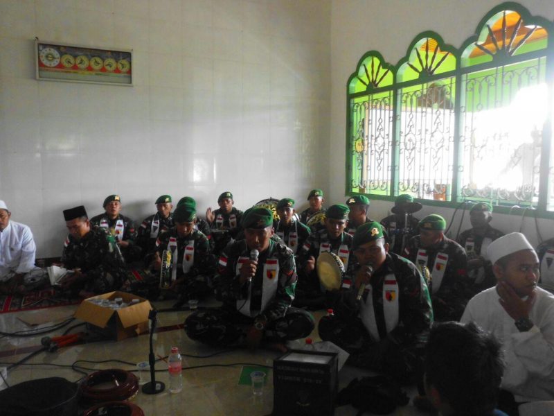Pengajian Zikir dan Sholawat dipimpin langsung oleh Gus Anom bin Syech Arifin Bin Ali bin Hasan, diiringi Hadrah Marawis Branjangan yang merupakan asuhan Dansatgas Yonif Mekanis 516/CY Letkol Inf Lukman Hakim, S.Si.