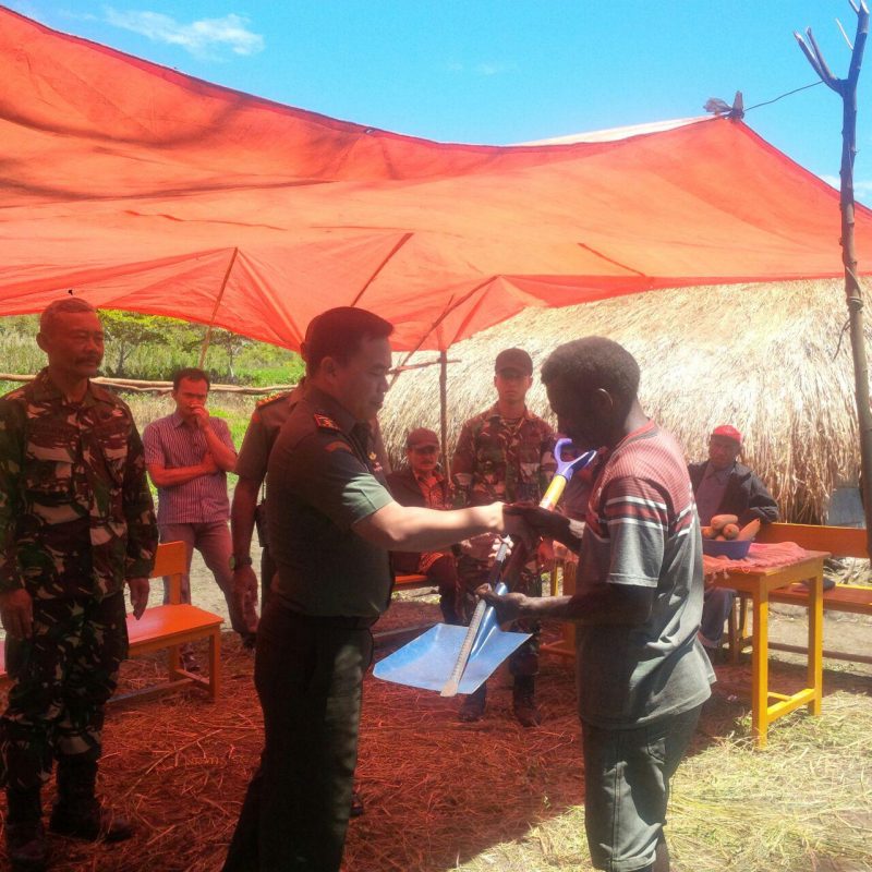 Dandim 1702/JWY turut didampingi oleh Pasiterdim 1702/jwy Lettu Inf Alberth Ansanay, Danramil 1702-05/Assologaima Letda Inf Pramono, Ketua Kelompok Tani Beni Tabuni, Pdt kilunggen Kogoya.