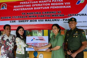 Abepura - Persatuan Wanita Patra (PWP) PT. Pertamina (Persero) wilayah Papua Maluku memberikan bantuan CSR berupa dana pendidikan kepada TK...