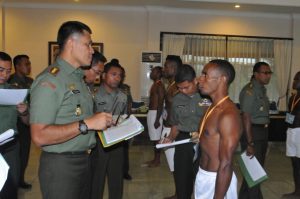Abepura - Danrem 172/PWY Kolonel Inf Teguh Pudjo Rumekso memimpin pelaksanaan Sidang pantohir Caba PK Pedalaman Sub Panda Jayapura Korem...