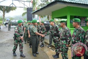 Jayapura - Komandan Pusat Teritorial Angkatan Darat (Danpusterad) Mayjen TNI Purwadi Mukson bersama rombongan mengunjungi prajurit satuan tugas (Satgas) pengamanan...