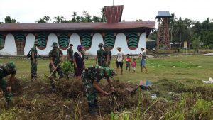 Keerom - Satuan Tugas Pengamanan Perbatasan Kolakopsrem 172/PWY Yonif Mekanis 516/CY laksanakan Karya Bhakti di lingkungan Gereja Katolik Santo Yakobus...