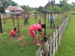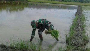 Jayapura. Anggota Koramil 1701-11/Nimboran, Babinsa Kampung Karyabumi, Sertu Keliopas melaksanakan salah satu kegiatan upsus dalam rangka mensukseskan program swasembada pangan,...