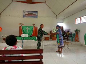 Keerom. Komitmen Satgas Pamtas Yonif 410/Alugoro dalam misi keagamaan terus berjalan untuk umat beragama yang di wilayah perbatasan, diantaranya dengan...
