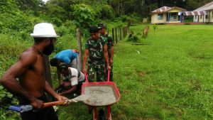 Keerom. Bentuk kecintaan pada dunia pendidikan khususnya pendidikan anak-anak yang ada di wilayah perbatasan, prajurit Satgas Pamtas Yonif 410/Alugoro siap...