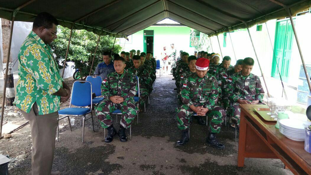 Skouw – Peringatan Hari Raya Natal hari ini di rayakan oleh Prajurit Satgas Yonif PR 432 Kostrad di perbatasan RI-PNG dengan suasana yang sangat khitmat dan sederhana walau jauh dari keluarga yang biasa mendampingi dalam momen moment seperti ini, Senin (25/12)