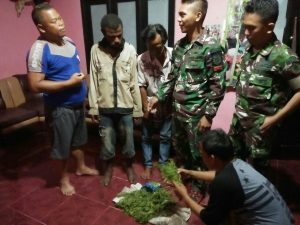 Arso - Prajurit Pamtas telah mengamankan 2 ikat daun ganja pada saat sedang melaksanakan belanja makanan di warung Ibu M...