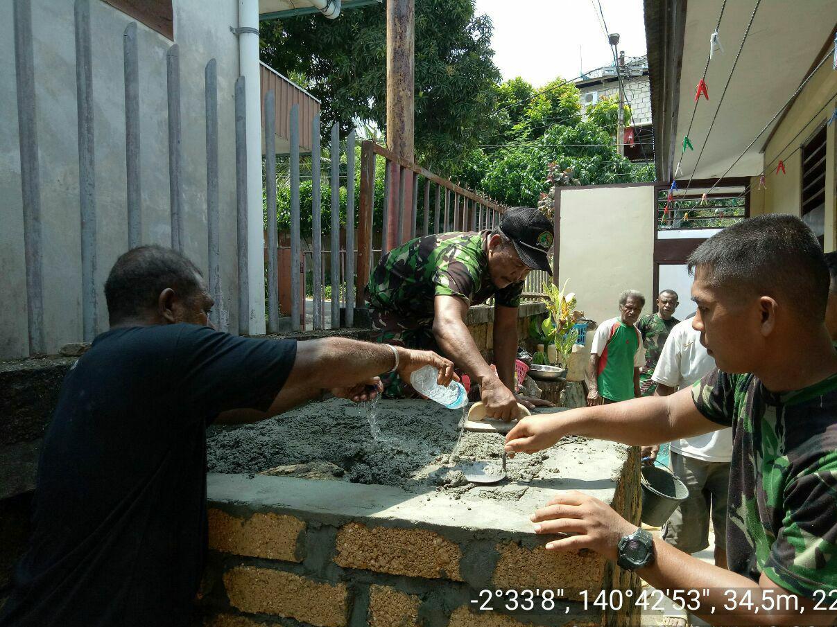 Dalam aksinya tersebut, Babinsa Koramil 1701-09/Jayapura Selatan langsung turun tangan membantu pembuatan bak penampungan/Tandon Air bersih, guna mengatasi keterbatasan air bersih di kediaman Pastori Jemaat Gereja GKI Lahai Roi Argapura Pdt. Bastian Worabay.