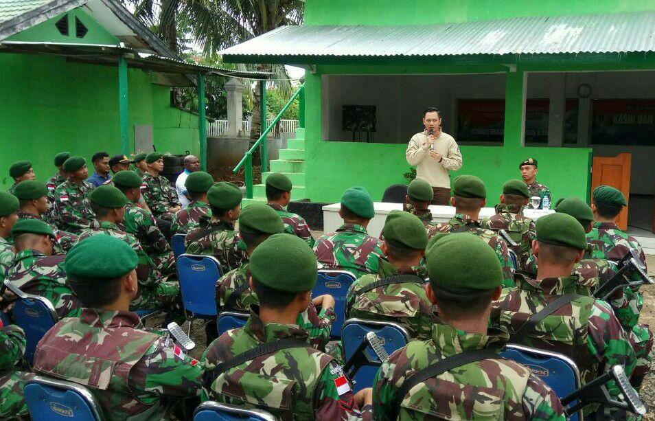 Skouw – Executive Directur The Yudoyono Institute Bapak Myr (Purn) Agus Harimurti Yudoyono (AHY) melakukan kunjungan kerjanya ke Satgas Pengamanan Perbatasan Yonif PR 432 Kostrad di Poskotis Skouw Perbatasan RI-PNG, Selasa (23/01).