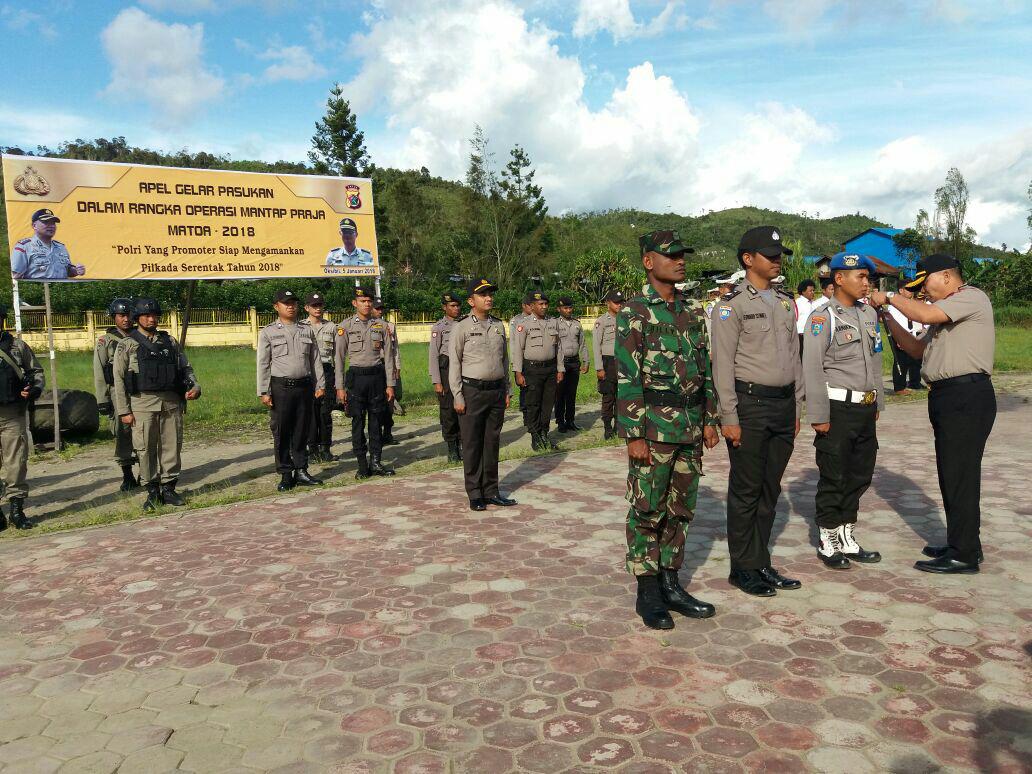 Bertempat di lapangan apel Mapolres Kab. Pegunungan Bintang, Jum’at (05/01), telah berlangsung Apel gelar Pasukan Oprasi Mantap Praja Matoa 2018 dengan mengusung tema “Polri Yang Promoter (mempunyai wilayah/area) Siap Mengamankan Pilkada serentak TA 2018”.