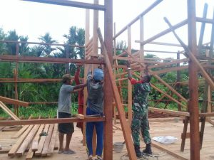 Keerom, Sertu Roni Bonai Babinsa Koramil – 04/Arso membantu pembangunan rumah warga binaannya di Kampung Yamta Pir 2 Distrik Arso...