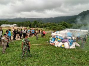 Skouw - Staf PLBN bersama Satgas Pamtas Yonif PR 432 Kostrad serta pihak Kepolisian melaksanakan kegiatan pemusnahan barang barang ilegal...