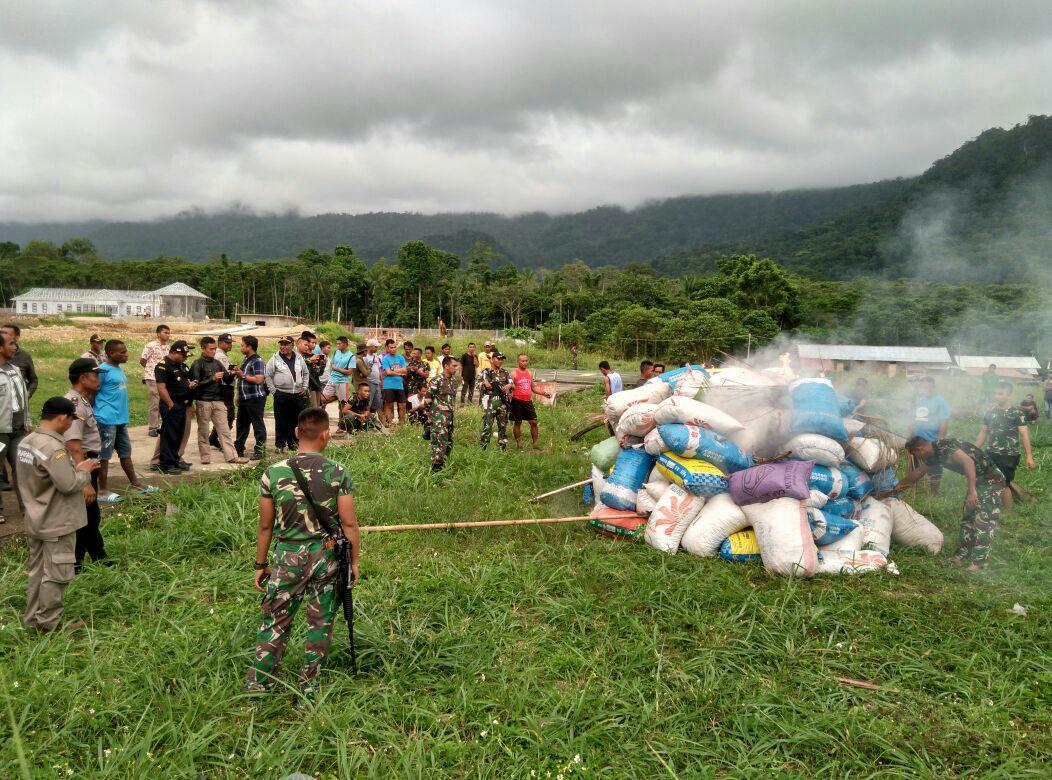 Skouw – Staf PLBN bersama Satgas Pamtas Yonif PR 432 Kostrad serta pihak Kepolisian melaksanakan kegiatan pemusnahan barang barang ilegal untuk kedua kalinya dari hasil sweping di depan Poskotis Skouw, Kamis (1/2).