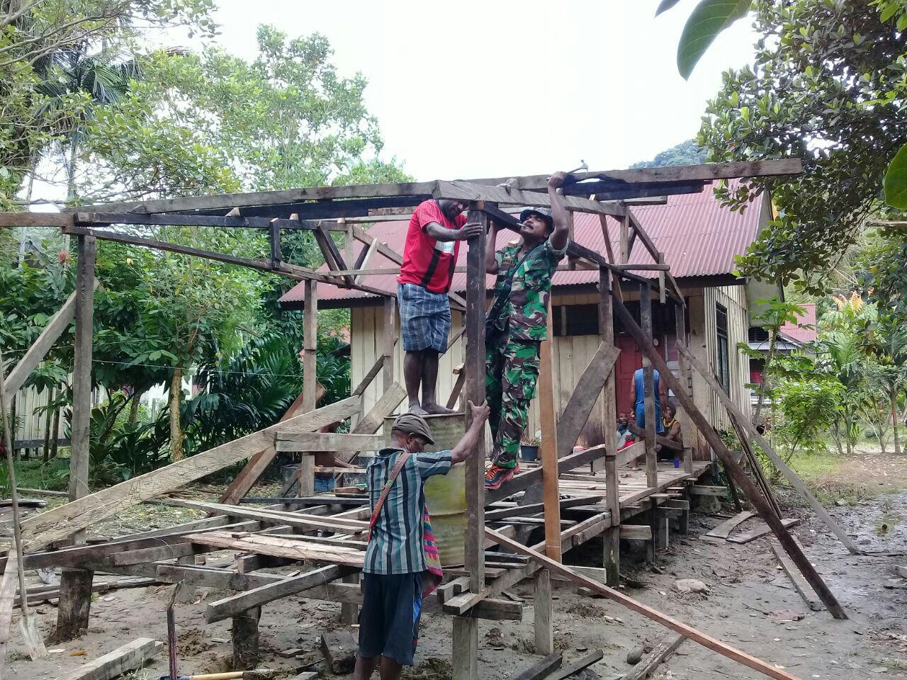 Serma Laurens mengungkapkan, kegiatan ini membantu bapak Eli Kalaka karena beliau sudah lajut usia dan tidak mungkin membangunnya sendiri. “Anak-anaknya sudah sudah tinggal di jayapura, dan beliau hanya tinggal bersama istrinya yang juga sudah berusia lanjut, mereka juga salah satu warga yang kurang mampu. Sedangkan kondisi dapur rumahnya sudah tidak layak dengan kayu-kayu penopangnya hampir semua lapuk. Sehingga dari Koramil dengan beberapa warga setempat sepakat membangunkan dapur yang baru”, ungkapnya.
