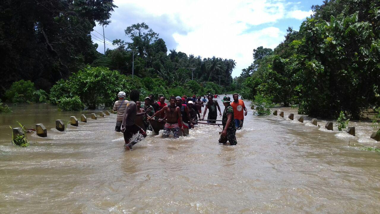 Danramil mengungkapkan debit air yang tinggi mencapai 1.5 meter menjadi sebab aktivitas transportasi dari jayapura menuju sarmi maupun sebaliknya terhenti. “Hingga saat ini debit air masih setinggi 1.5 meter dan arus yang cukup deras dengan panjang jalan tergenang sepanjang 250 meter. Hanya kendaraan roda dua saja yang dapat lewat, itupun menggunakan jasa perahu dan dipikul oleh warga dan para Babinsa yang ada”, ungkapnya.