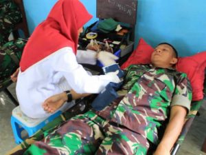 Keerom - Satuan Tugas Pengamanan Perbatasan (Satgas Pamtas) Yonif 12/Macan Kumbang (MK) bekerjasama dengan Palang Merah Indonesia (PMI) Jayapura menggelar...