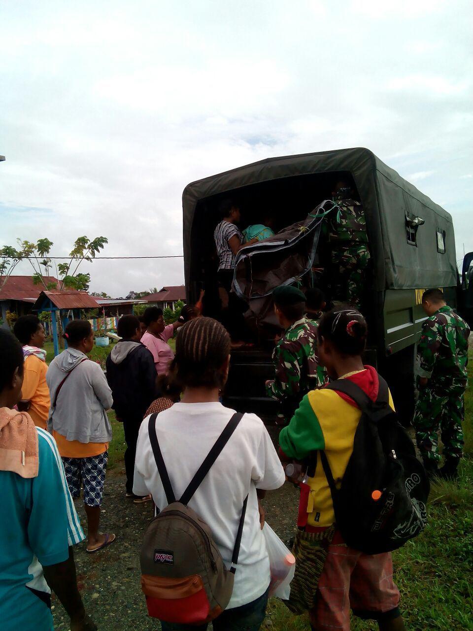 Senggi – Kegiatan kali ini Satgas Pamtas Yonif RK 644/Wls bersama Persatuan ibu-ibu GKE Senggi sejumlah 75 orang, kegiatan ini di dampingi langsung oleh Pabintal Yonif RK 644/Wls Lettu Caj Samuel Otto. Dengan menggunakan kendaraan truk yang telah disediakan oleh Yonif Rk 644/Wls, 75 jemaat berangkat dari Distrik Senggi pada 07 Juli 2018 pukul 07.00 WIT menuju gereja Maranata di Yabanda. Kegiatan ibadah rutin bulanan ini dilaksanakan secara bergantian.