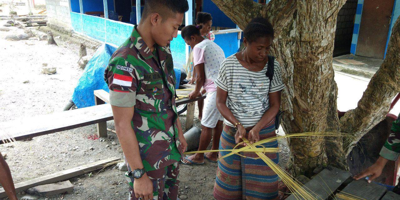 Dengan melihat kekayaan alam yang ada di wilayah penugasan, anggota Satgas Pamtas Yonif 121/MK berupaya untuk berinovatif dengan memberikan pelatihan kerajinan tangan bagi masyarakat, meskipun begitu sederhana namun hasil dari kerajinan tangan tersebut dapat memberikan manfaat dan nilai guna yang baik untuk dijadikan perabotan rumah tangga. Dari kegiatan tersebut, mama-mama Papua yang di berikan pelatihan kerajinan tangan sangat antusias untuk mengikuti sosialisasi dari anggota Satgas dalam mempraktekan pembuatan perabotan rumah tangga yang terbuat dari bahan janur kuning. Sekalipun disertai senda gurau, kerajinan tangan yang dibuat nampak membuahkan hasil yang baik dan disukai oleh mama-mama Papua sehingga banyak pula perabotan rumah tangga yang dibuat berkat pelatihan dari anggota satgas.