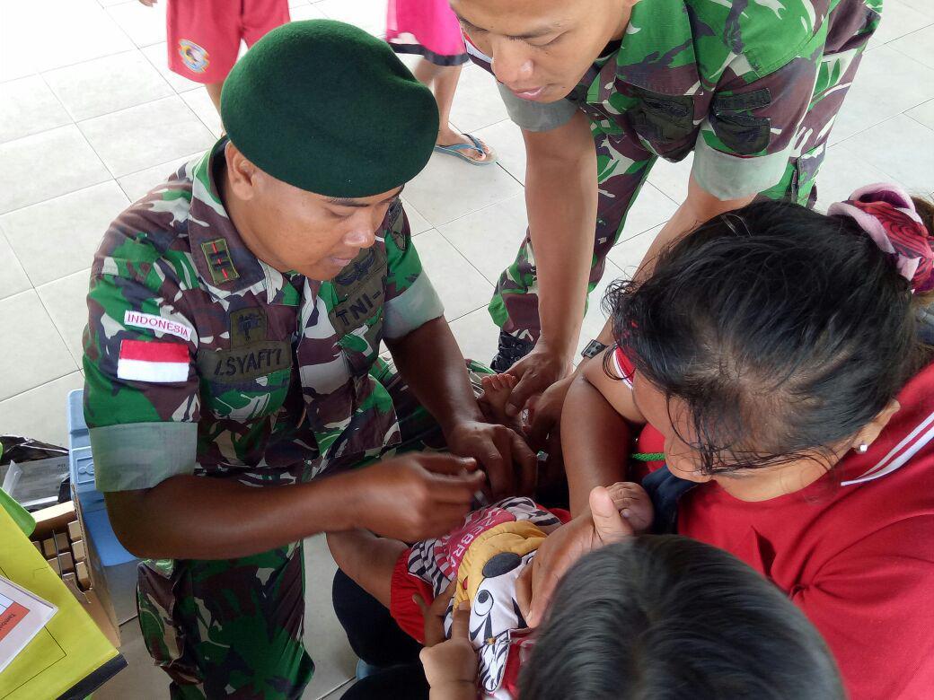 Senggi – Satgas Pamtas Yonif RK 644/Wls bersama Puskesmas Senggi melaksanakan kegiatan Posyandu Balita di SP2 Kp. Woslay, Distrik Senggi. Acara tersebut dimulai pada pukul 08.00 WIT, dalam kegiatan tersebut turut hadir kepala Puskesmas Senggi (Kapus) Ibu Costantina S. Patipeme, SKM.