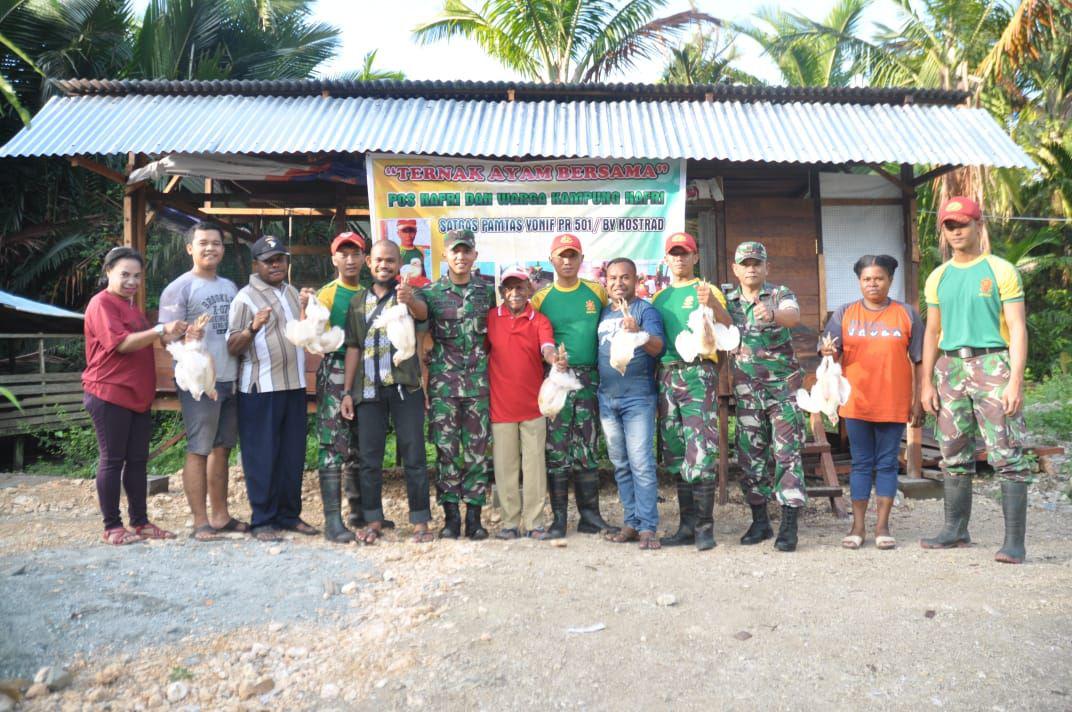 Sejak diresmikannya peternakan ayam Pos Nafri oleh Dansatgas pada Juli lalu, Pos Nafri mulai beternak sebanyak 300 ekor ayam potong. Tekhnis pelaksanaannya, setiap hari pagi dan sore, beberapa personel Pos Nafri mengajak beberapa masyarakat untuk ikut merawat, memberi makan dan membersihkan kandang ayam tersebut. Tujuannya adalah agar masyarakat Kampung Nafri mengerti dan paham bagaimana cara beternak ayam yang baik. Diharapkan, ketika Satgas 501 Kostrad selesai melaksanakan penugasan, Masyarakat Kampung Nafri sudah punya bekal ilmu tentang cara beternak ayam yg baik dan benar.
