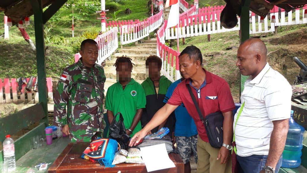 Dengan ditemukannya barang bukti ganja petugas langsung mengamankan 3 orang warga tersebut dan melakukan pemeriksaan lebih lanjut di Pos Wembi. Di dalam pemeriksaan salah seorang dari 3 warga tersebut Sdr. JS seorang pelajar tidak mengetahui bahwa rekan yang diboncengnya yaitu Sdr. EY membawa ganja yang ada di dalam tas punggungnya karena menurut pengakuannya bahwa yang bersangkutan hanya memberikan tumpangan dari Waris menuju Arso.