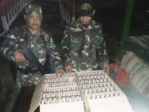 Satuan Penugasan Pengamanan Perbatasan Negara antara Indonesia dan Papua Nugini dari Batalyon Infanteri 121/MK kembali mengamankan puluhan botol minuman keras...