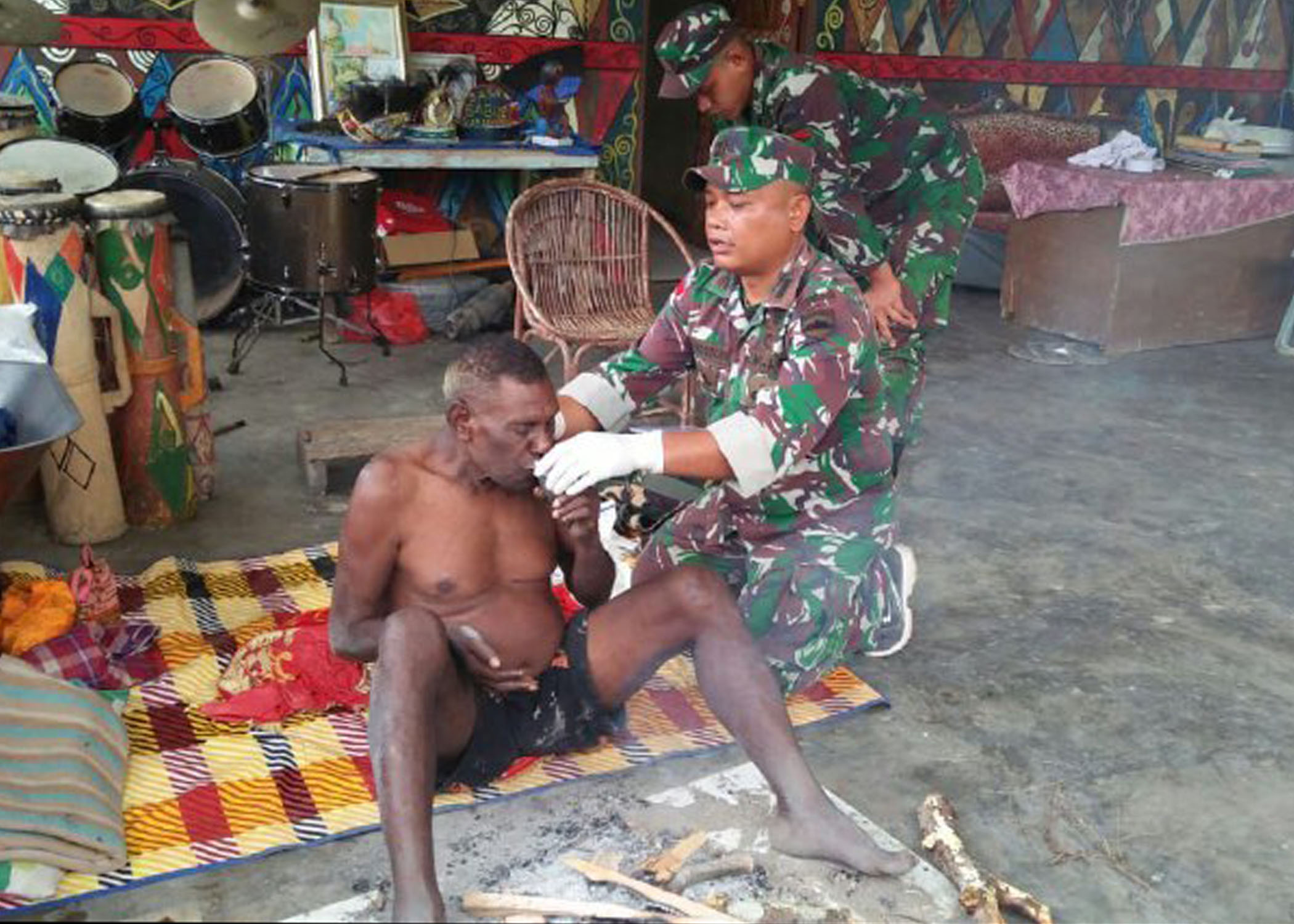 Mendengar laporan masyarakat yang sakit, Tim Kesehatan Pos Wembi dibawah pimpinan Danpos Lettu Ckm J. Nainggolan secara sukarela berangkat dengan gunakan kendaraan satgas untuk melakukan penanganan kesehatan yang dibutuhkan. Ondoafi Beni Mikawa yang dalam keadaan lemah dan lunglai karena sakit, di berikan pengobatan secara maksimal dengan obat-obatan yang sudah tersedia dan suntikan untuk menyembuhkan sakit yang dideritanya. Mirisnya, Beni mikawa adalah ondoafi yang tinggal seorang diri di rumah adat tanpa istri dan anak-anaknya, sehingga tidak ada yang merawat kondisi kesehatannya.