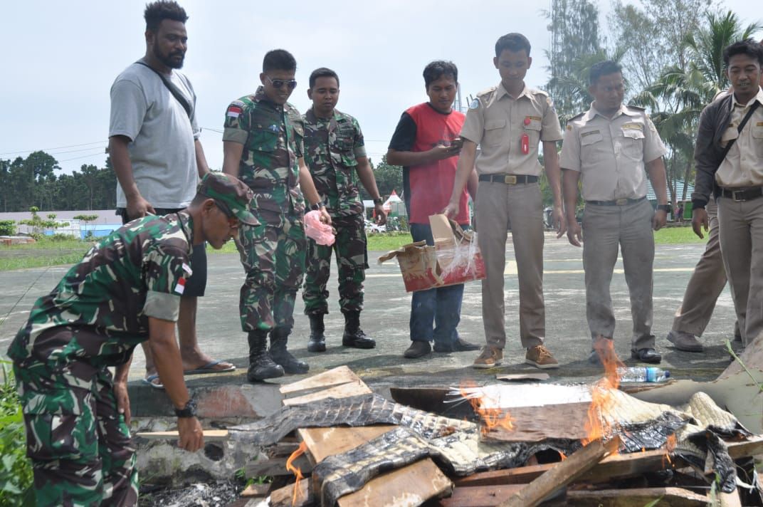 Abepura (1/8), Sudah menjadi kewajiban bagi setiap warga Negara apabila membawa komoditas sumber daya alam apapun, harus disertai dengan dokumen resmi yang dikeluarkan oleh Badan Karantina. Apabila hal tersebut dilanggar, maka sudah pasti akan berhadapan dengan hukum yang berlaku. Seperti yang saat ini dilakukan oleh Satgas Yonif Para Raider 501 Kostrad bersama dengan Balai Karantina Jayapura melaksanakan pemusnahan Kulit Buaya ilegal yang diselenggarakan di Pos Komando Taktis (Kotis) Satgas Yonif Para Raider 501 Kostrad, Skouw, Distrik Muara Tami, Jayapura.