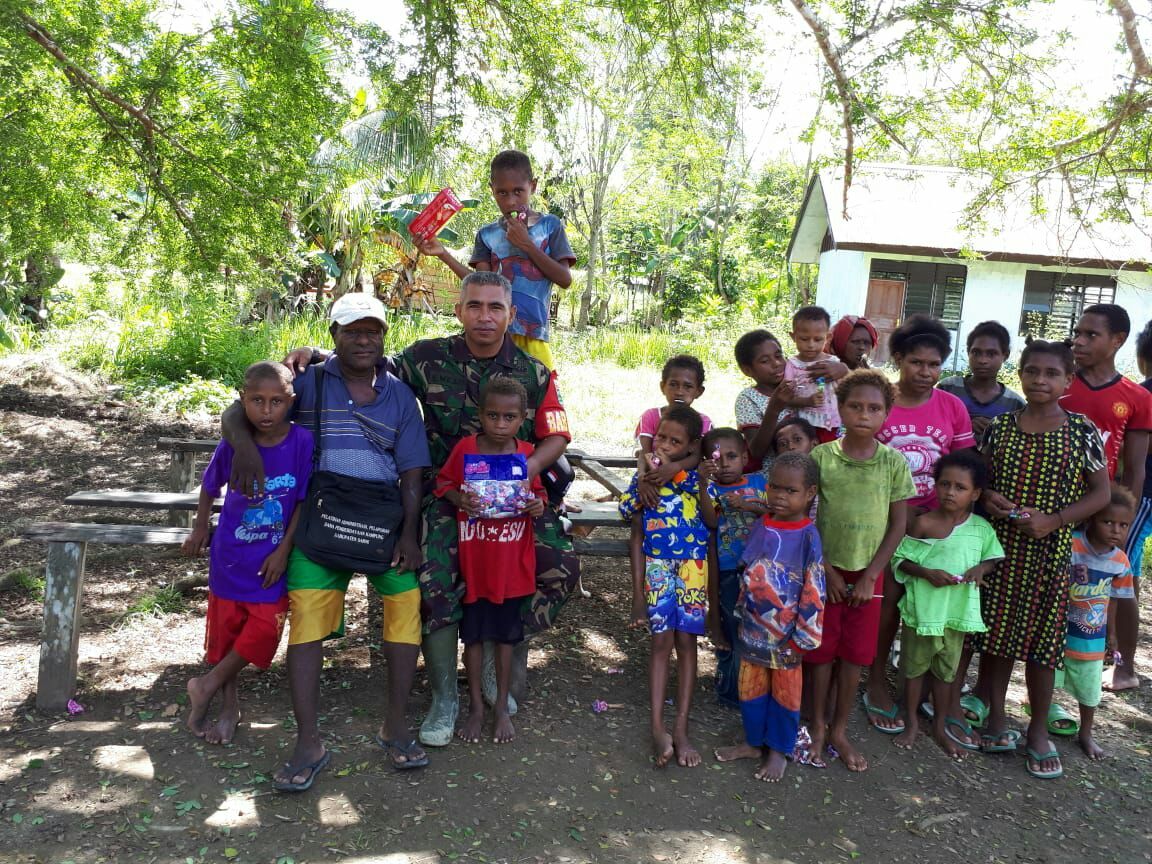 Abepura (9/9), bertempat di Kampung Weyen Distrik Tor tor Kab. Sarmi, Babinsa Koramil 1712-03/Tor Serda E. Wear menghibur anak-anak Kampung Weyen melalui kegiatan Komsos dengan masyarakat serta membagikan makanan kecil kepada anak-anak warga, pada hari Sabtu 8/9/2018.