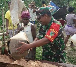 Abepura - Rabu (5/9), bertempat di Kampung Sosial Distrik Unurum Guay Kab. Jayapura, Babinsa Koramil 1701-16/Unurum Guay Serka Sudarno membantu...