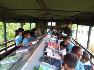 Abepura (6/9), Dalam rangka mencerdaskan kehidupan generasi bangsa untuk mengundang minat membaca sejak dini, 5 orang Personel Satgas Yonif PR...