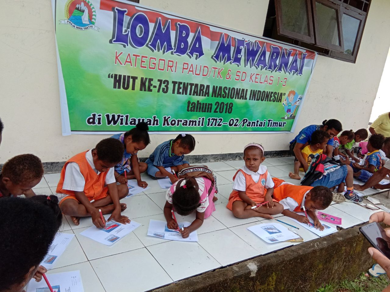 Bekerja sama dengan pihak sekolah, Babinsa dibantu guru-guru sekolah dan pengasuh mengkoordinir kegiatan lomba mewarnai bendera Merah Putih yang dilaksanakan di teras sekolah PAUD. Dari lomba mewarnai tersebut, anak-anak sekolah dapat menyalurkan potensinya dengan kreasi dan bakat mewarnai yang bertujuan untuk membentuk karakter generasi muda yang berjati diri bangsa Indonesia yang berbendera Merah Putih sebagai bendera kebangsaan.