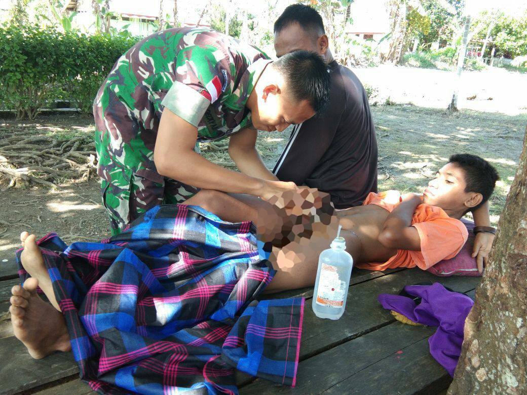 Abepura (6/9), bertempat di Kampung Naramben Arso 13 Kab. Keroom, Satgas Yonif 121/MK Pos Arso melaksanakan pelayanan kesehatan khitanan massal kepada masyarakat kurang mampu dengan mendatangi rumah warga yang membutuhkan anaknya untuk di sunat dalam rangka membantu mendukung kesehatan masyarakat.