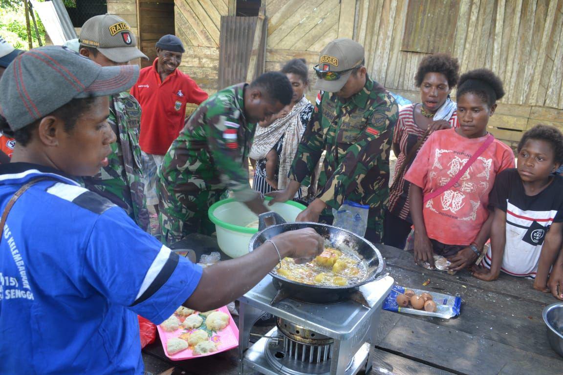 Senggi 26 September 2018, Dalam rangka menyambut HUT TNI serta meningkatkan pemberdayaan ketrampilan masyarakat, Satgas Yonif RK 644/Wls menggelar pengajaran cara pembuatan kue di Dusun Tiarsih Kampung Molof Distrik Senggi Kab.Keerom.