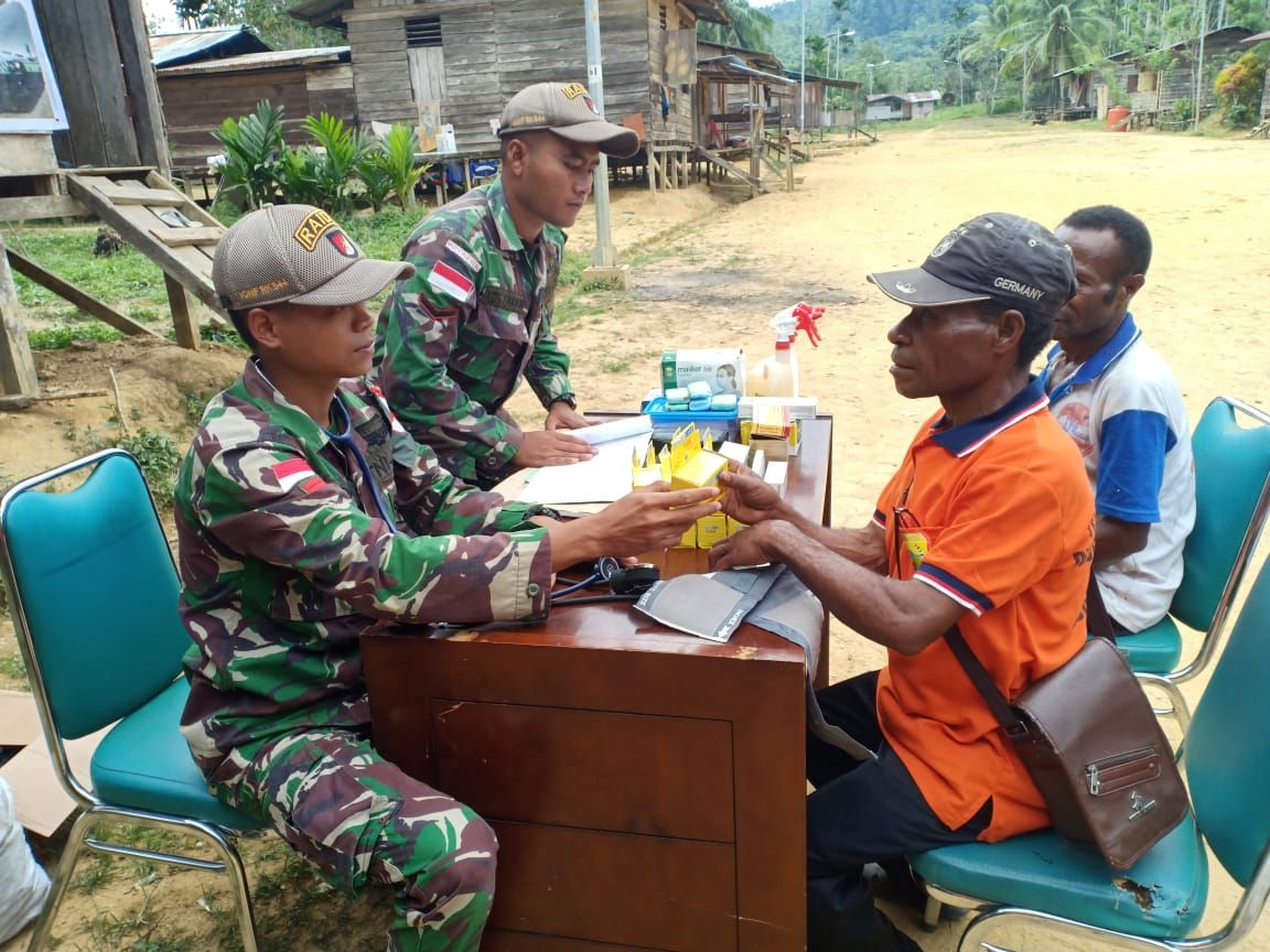 Salah satu kontribusi satuan TNI yang menyentuh pada sendi kehidupan masyarakat yaitu dengan melakukan kegiatan sosial atau kemanusiaan seperti yang dilakukan oleh Lettu Inf Indriansyah beserta 10 orang personel Satgas Yonif RK 644/WLS Pos Yuruf, melakukan pengobatan massal bagi masyarakat secara gratis dalam rangka memperingati HUT TNI ke 73 bertempat di Kampung Yuruf Distrik Yaffi Kab. Keroom.