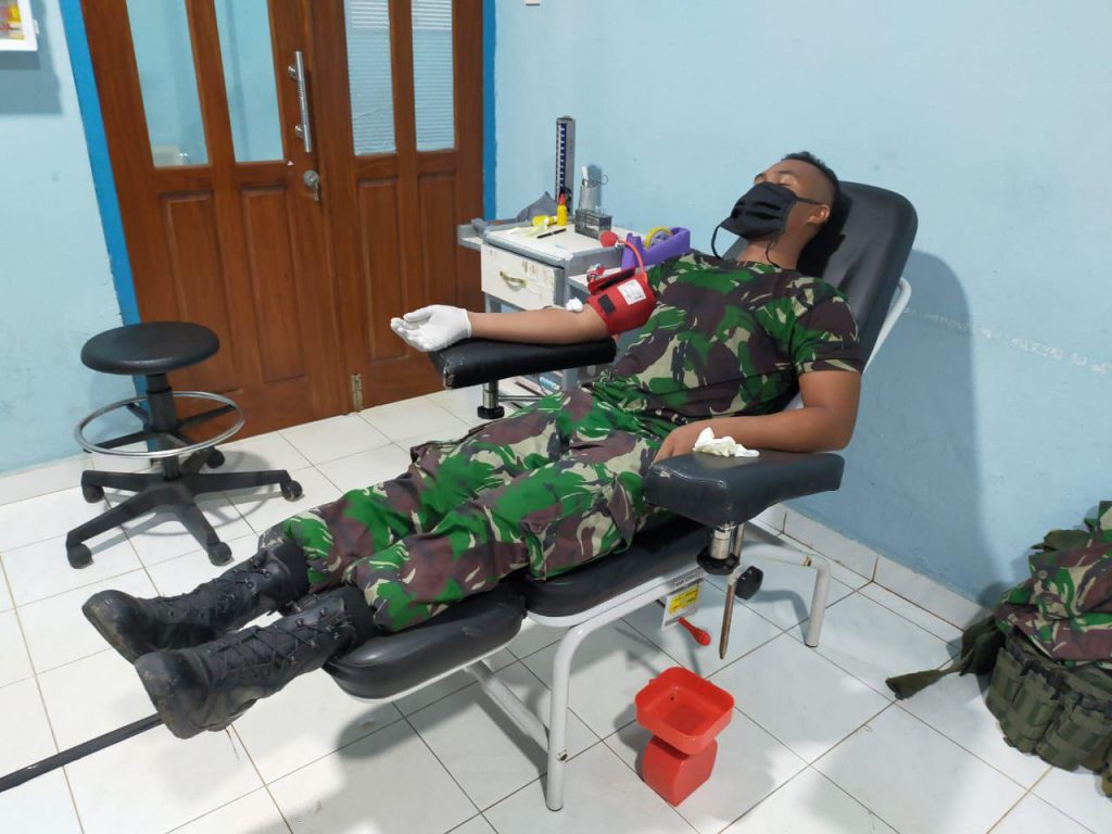 Dibawah pimpinan Serda Irfan Wali personil bergerak ke RS Dok 2 Jayapura Papua untuk menolong korban dengan mendonorkan darahnya untuk korban.