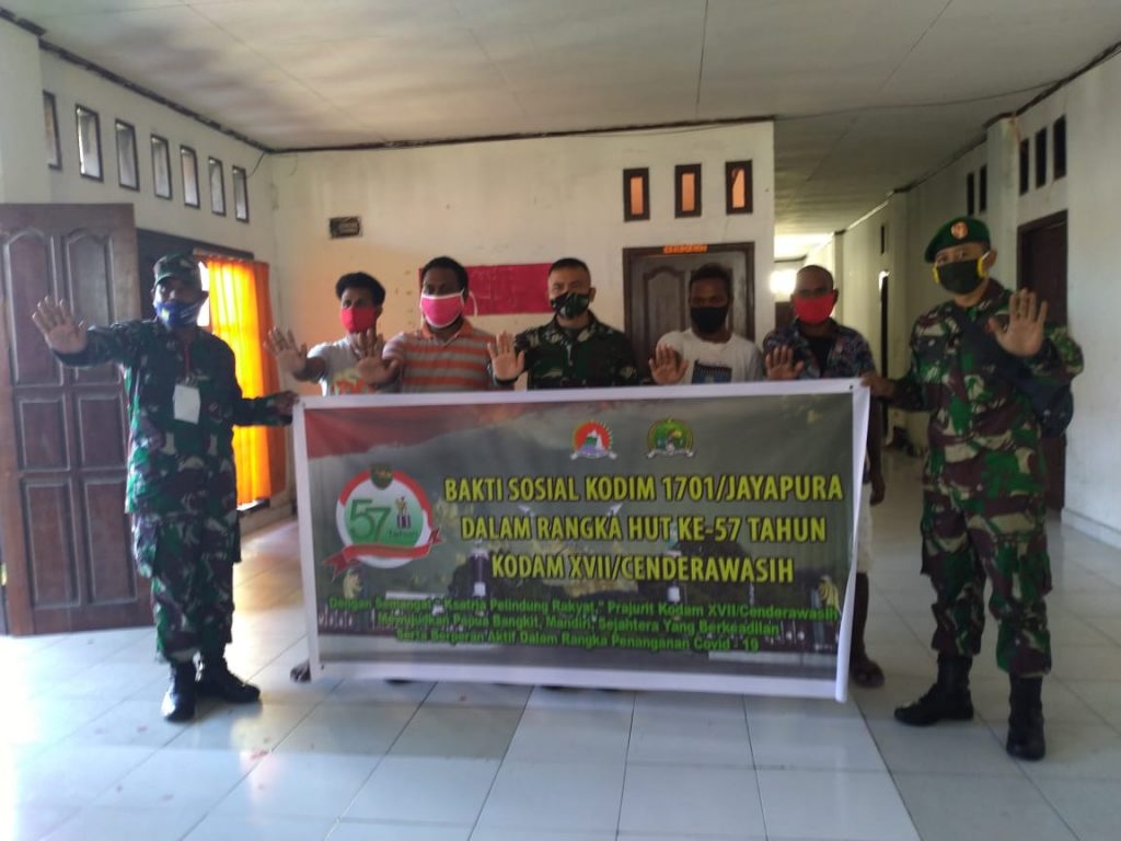 “Kegiatan ini juga sebagai bentuk kepedulian TNI kepada masyarakat dalam menyikapi pandemi Covid-19 di provinsi papua”, ujar Dandim.
