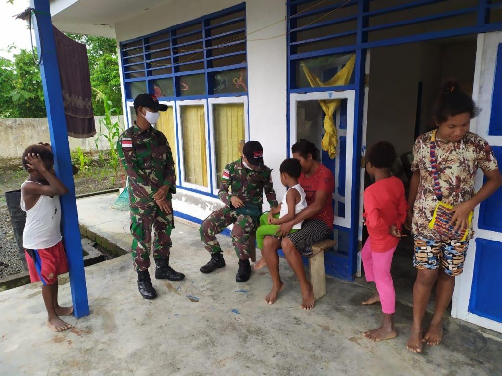 Satgas Pamtas Yonif Raider 300/Bjw, Pos Waris dipimpin Serda Rizal melaksanakan pengecekan kesehatan warga sekaligus mendata keadaan masyarakat di Kampung Banda, Distrik Waris.