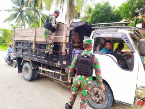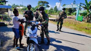 Satgas Pamtas Yonif Raider 300/Bjw, Pos Yamara dipimpim Serda Pardede melaksanakan pemeriksaan kendaraan dan bagikan masker gratis kepada masyarakat di...