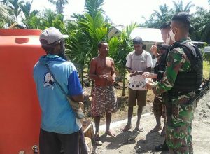 Satgas Pamtas Yonif Raider 300/Bjw, Pos Wambes di pimpin Serda Bayu Arif Winanda beserta 7 orang anggota membantu mengajarkan cara...