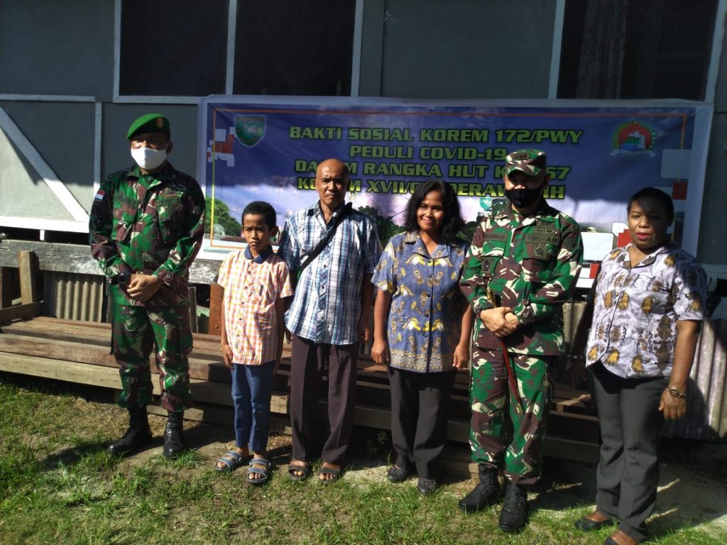 Sembako diberikan oleh Komandan Kodim 1701/Jayapura Kolonel Inf Jerry Simatupang mewakili Komandan Korem (Danrem) 172/PWY Kolonel Inf Izak Pangemanan.