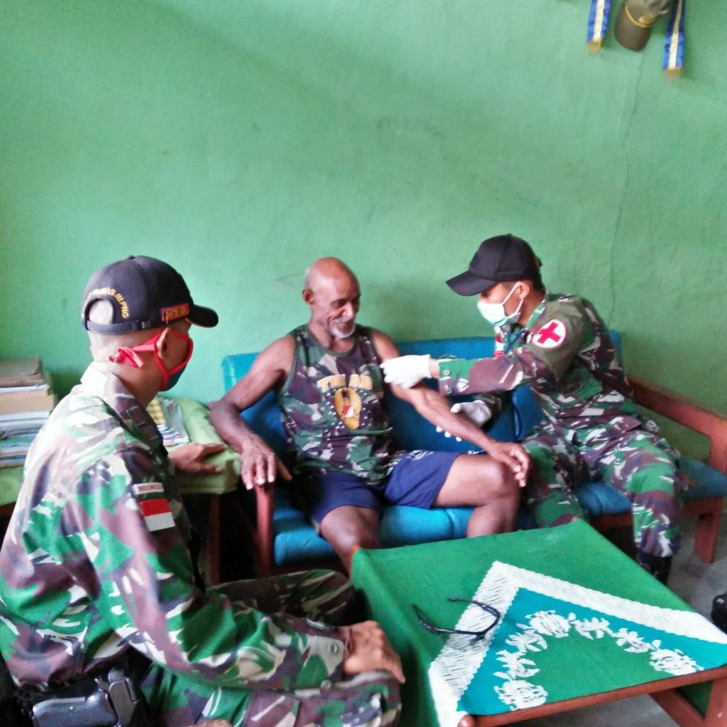 Abepura – Satgas Pamtas RI-PNG Yonif Raider 509 Kostrad Pos Kotis gelar kegiatan Pengobatan dari rumah ke rumah di Kp. Warlef Distrik Senggi, Kab. Keerom, Papua. Jumat (5/6).