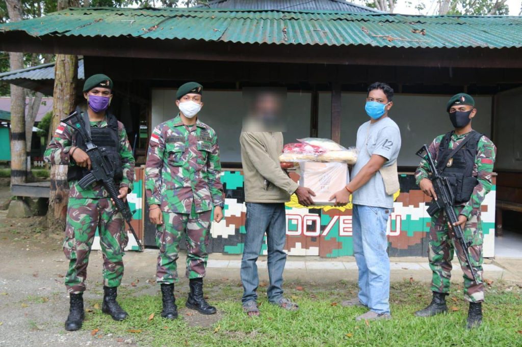 Satgas Pamtas Yonif Raider 300/Bjw, Pos Kotis yang dipimpin Serka Anton Wiratama berikan Tali Asih kepada masyarakat di Distrik Mannem.
