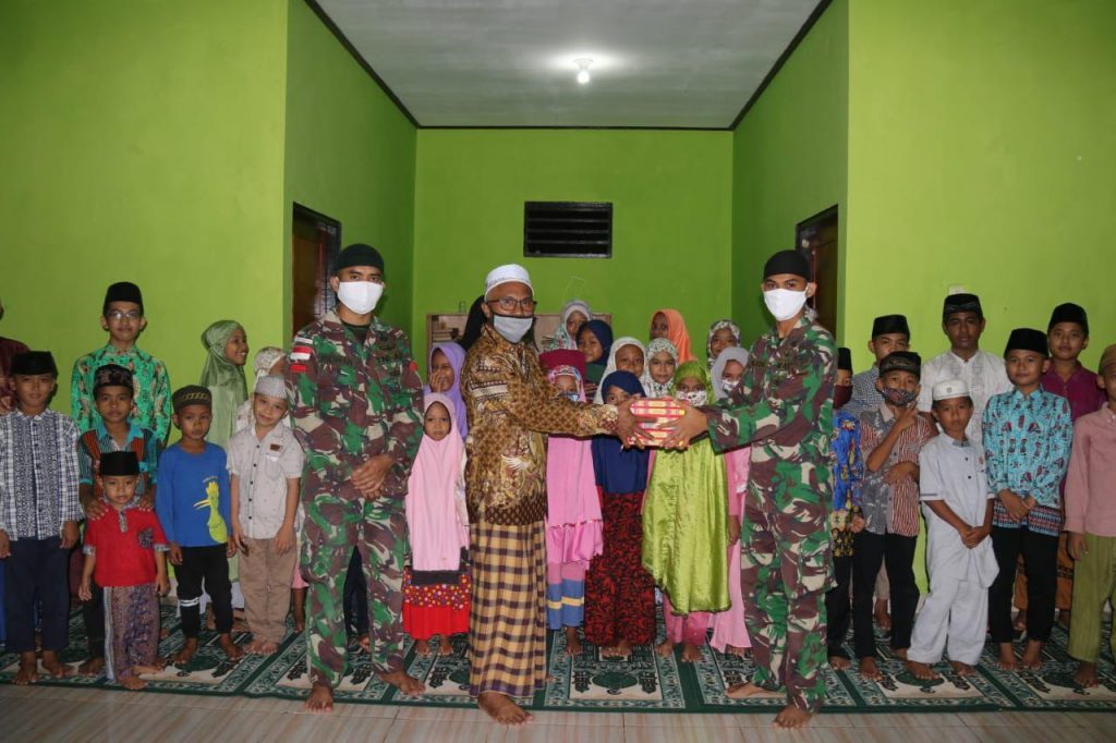 Satgas Pamtas Yonif Raider 300/Bjw, Pos Kotis dipimpin oleh Serda Afdal bagikan Alquran kepada tempat pengajian anak-anak perbatasan di TPA Nurul Jannah di Kampung Wonorejo, Distrik Mannem. Kamis (11/6/2020)