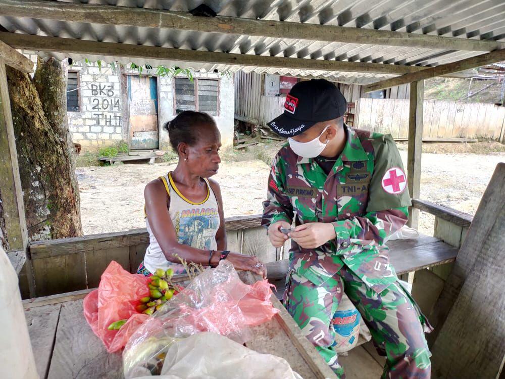 Satgas Pamtas Yonif Raider 300/Bjw, Pos Wembi dipimpin Sertu Zakarias beserta 5 orang melaksanakan pelayanan Kesehatan bagi warga masyarakat Kampung Wembi, Distrik Mannem.