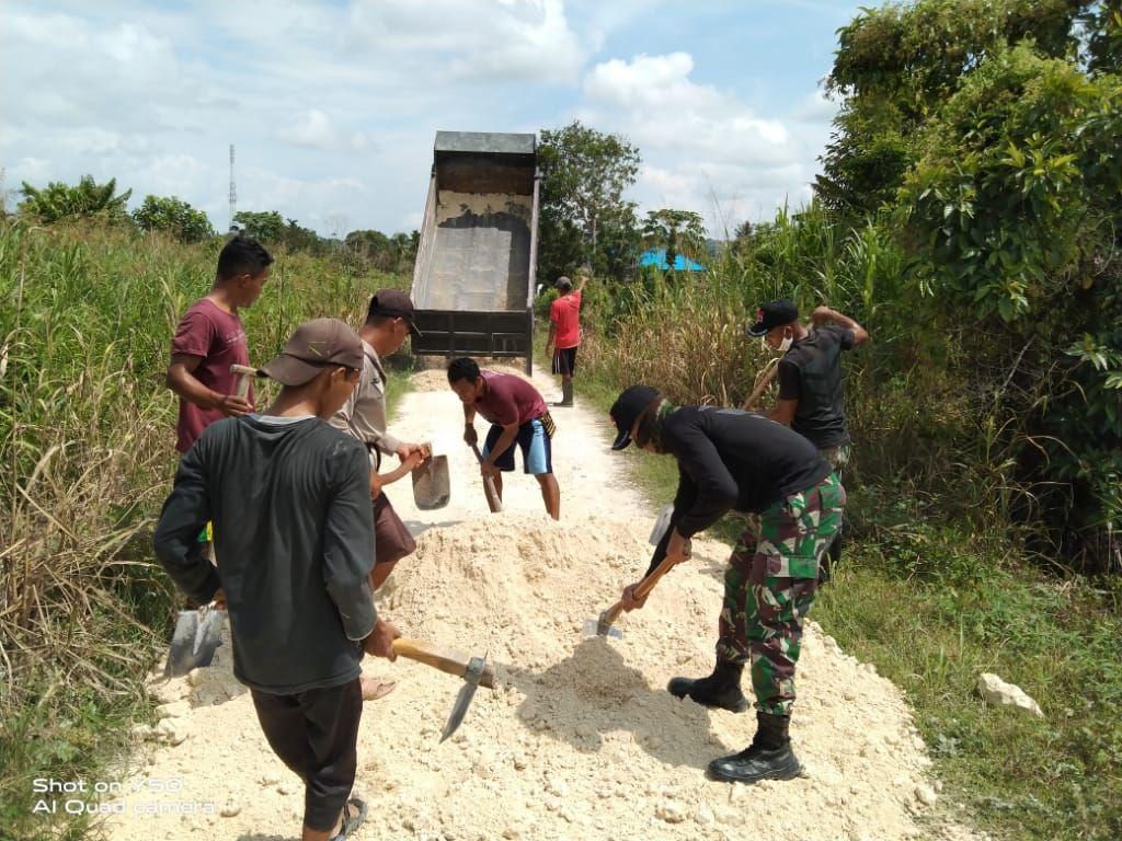 Gotong royong yang dilakukan Satgas Pamtas Yonif Raider 300/Bjw adalah bentuk kegiatan teritorial yang dilakukan untuk membantu masyarakat Kampung Naramben dalam perbaikan jalan yang dilakukan dengan cara bersama-sama.