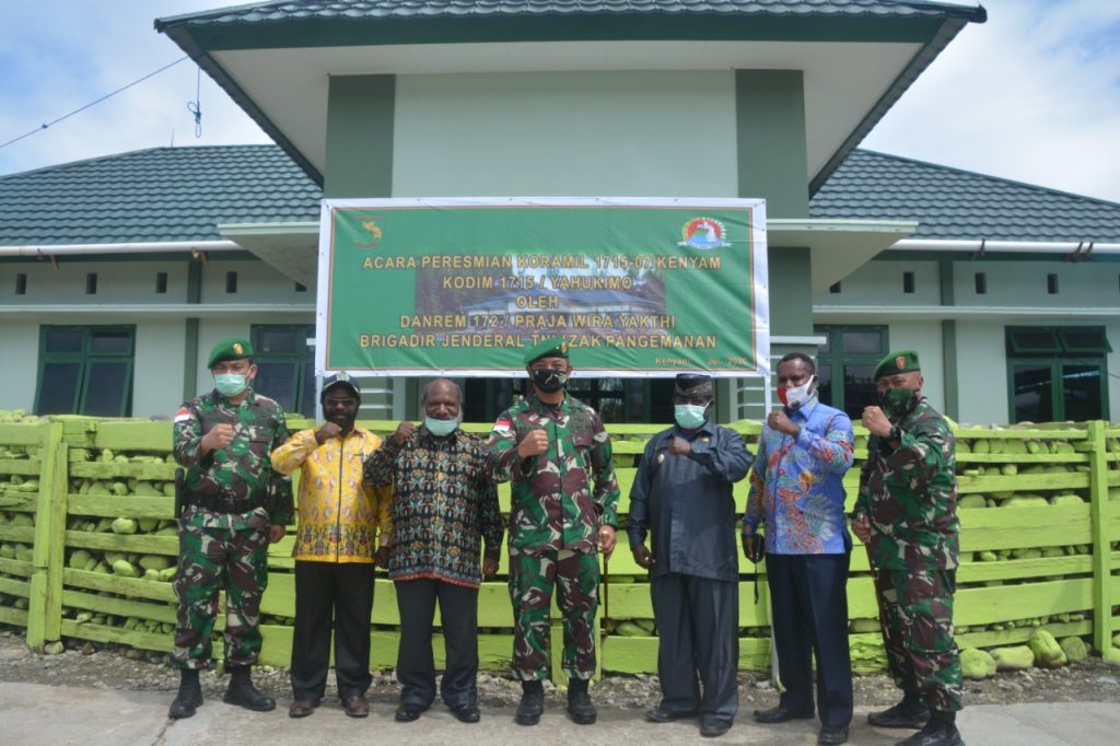 Abepura – Komandan Korem 172/PWY Brigjen TNI Izak Pangemanan bersama Bupati Nduga Yairus Gwijagge, S.Sos, M.Si secara simbolis bersama-sama meresmikan Koramil 1715-07/Kenyam Kodim 1715/Yahukimo, Jum’at (10/7).